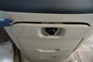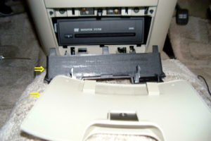 (シフトレバーがひっかかるので、ロックを外してニュートラルの位置にしておくと取り出しやすいでしょう。)