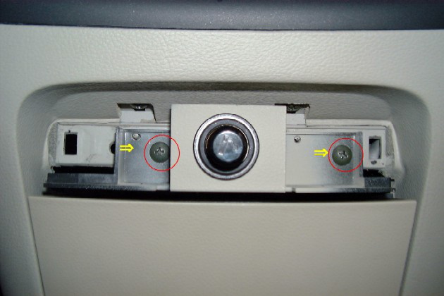 シュガライター、カップホルダーを外す シガーライターとカップホルダー、ナビカバーは一体式なので、左のネジを外せば、全部前に引き出せます。 ナビのカバー(2つ)にはネジがなく、ひっぱれば外れます。