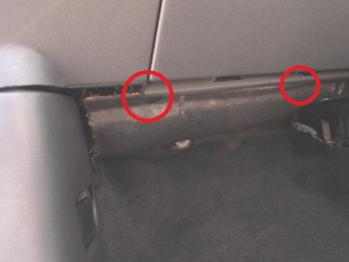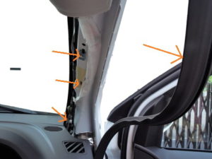 ETCアンテナからの配線は、助手席ピラーを通して助手席下までもってきます。(写真は運転席)
