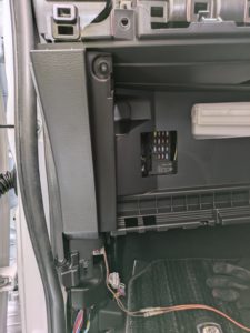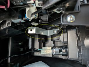 グローボックスの右アームを少し右に開いて外します。その奥も上部ネジ3本と左下10mmネジを外します。