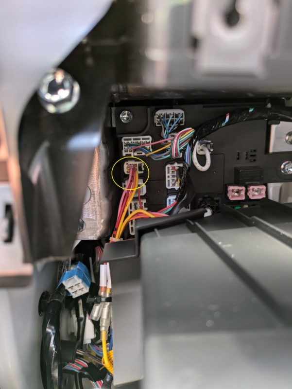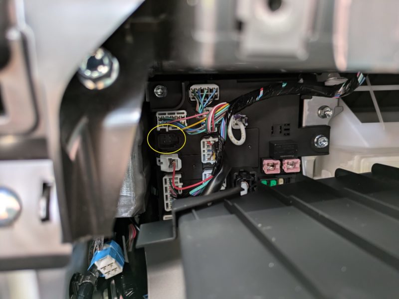 赤丸部分に差し込みます。ヒューズBOXの左上で空いているところがありますのですぐにわかると思います。