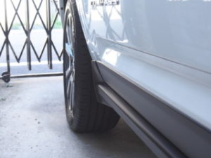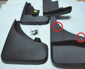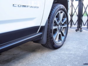 こちらはドレスアップの意味合いもありますが、白い車なのでやっぱり泥除けは必要!なにかと汚れますので、これでだいぶ防げます。後部用はJEEPのロゴも!
