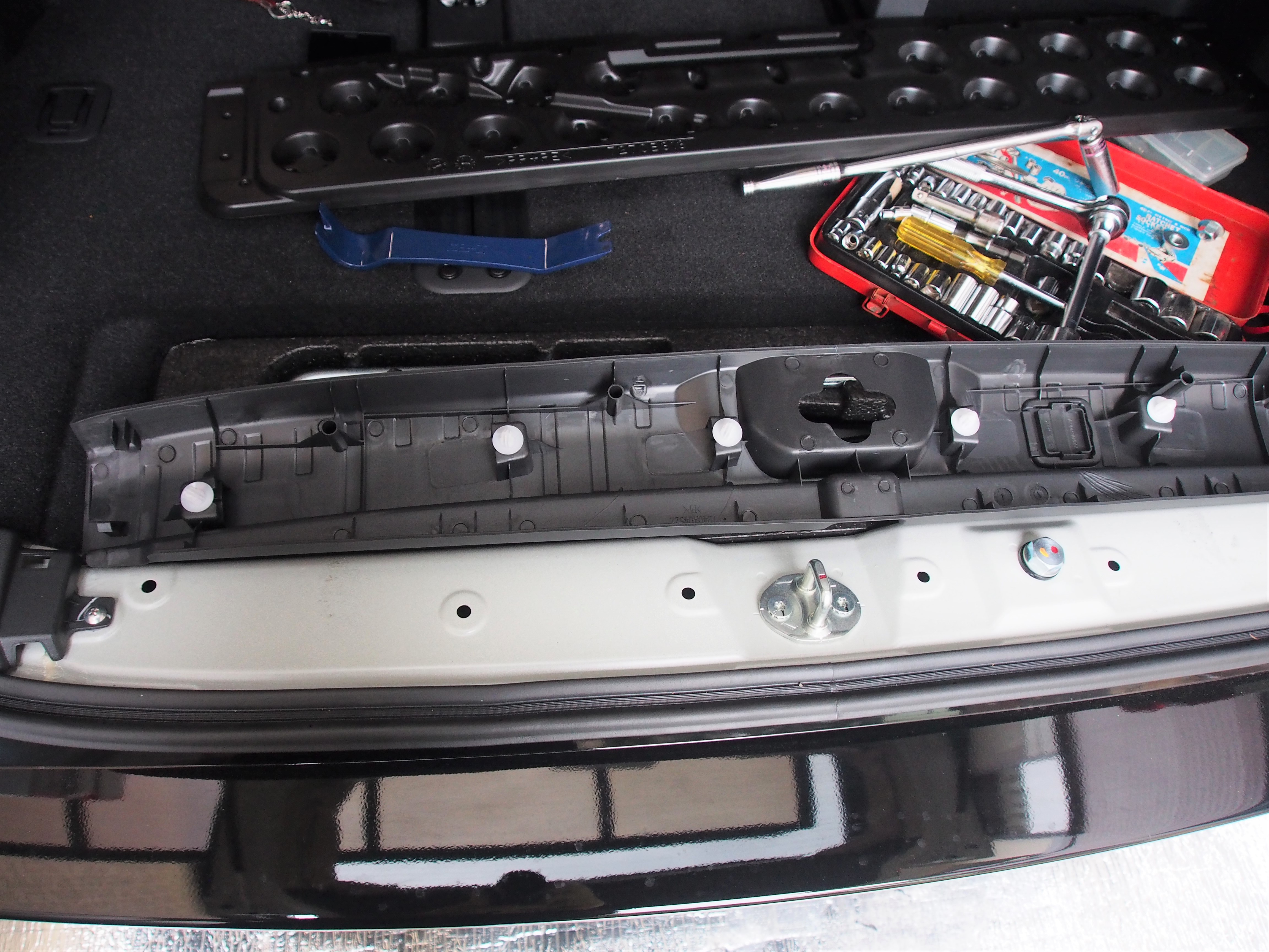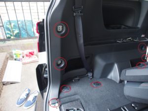 まず、後部の内張を外すためには、3列目シートを外します。ただし、このカバーがなかなか外れないです。