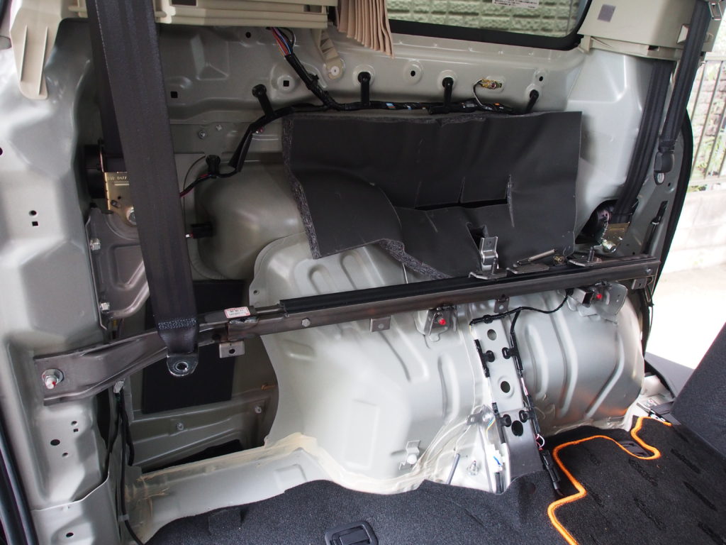 本当は音を出して、ビビる部分に制振材をはりたいところですが、ナビがまだ設置されてないのでいったんこれで終了です。