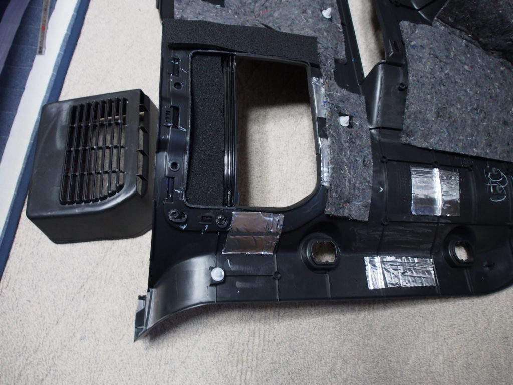 外した内張です。結構大きいですが、ここも少しでも制振シートと吸音材を追加で貼っておきます。