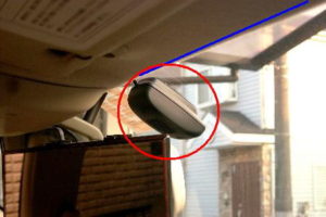 エルグランドは比較的簡単にケーブルを押し込めます。(青い線の部分) |