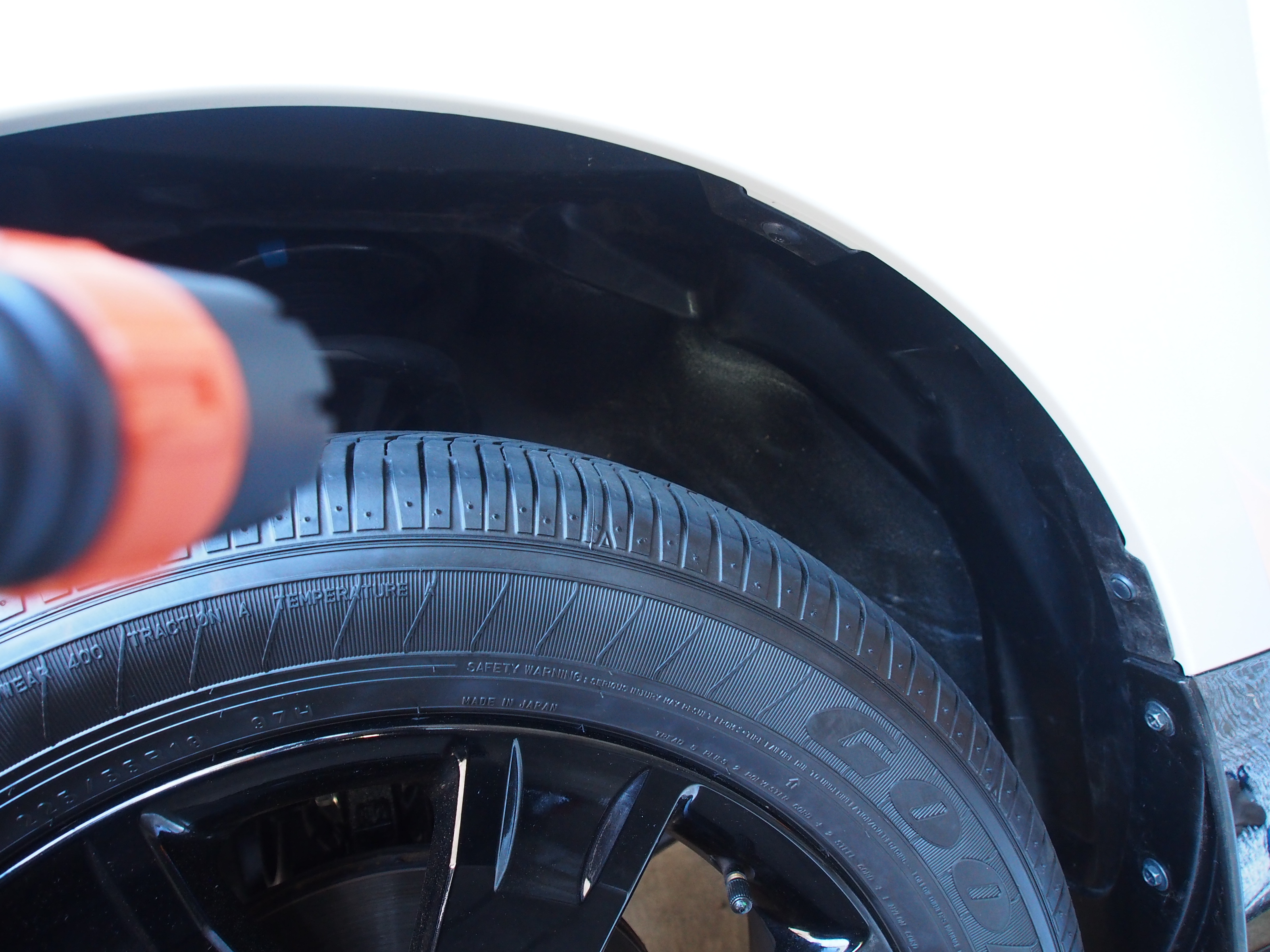 タイヤハウスのカバーはクリップで留まっているだけですので、後部の一部を外します(もちろん全部でもいいのですが、クリップが結構固く1個つぶしてしまいました。)