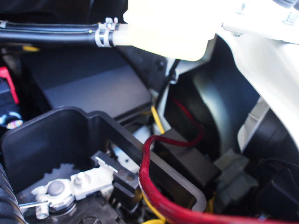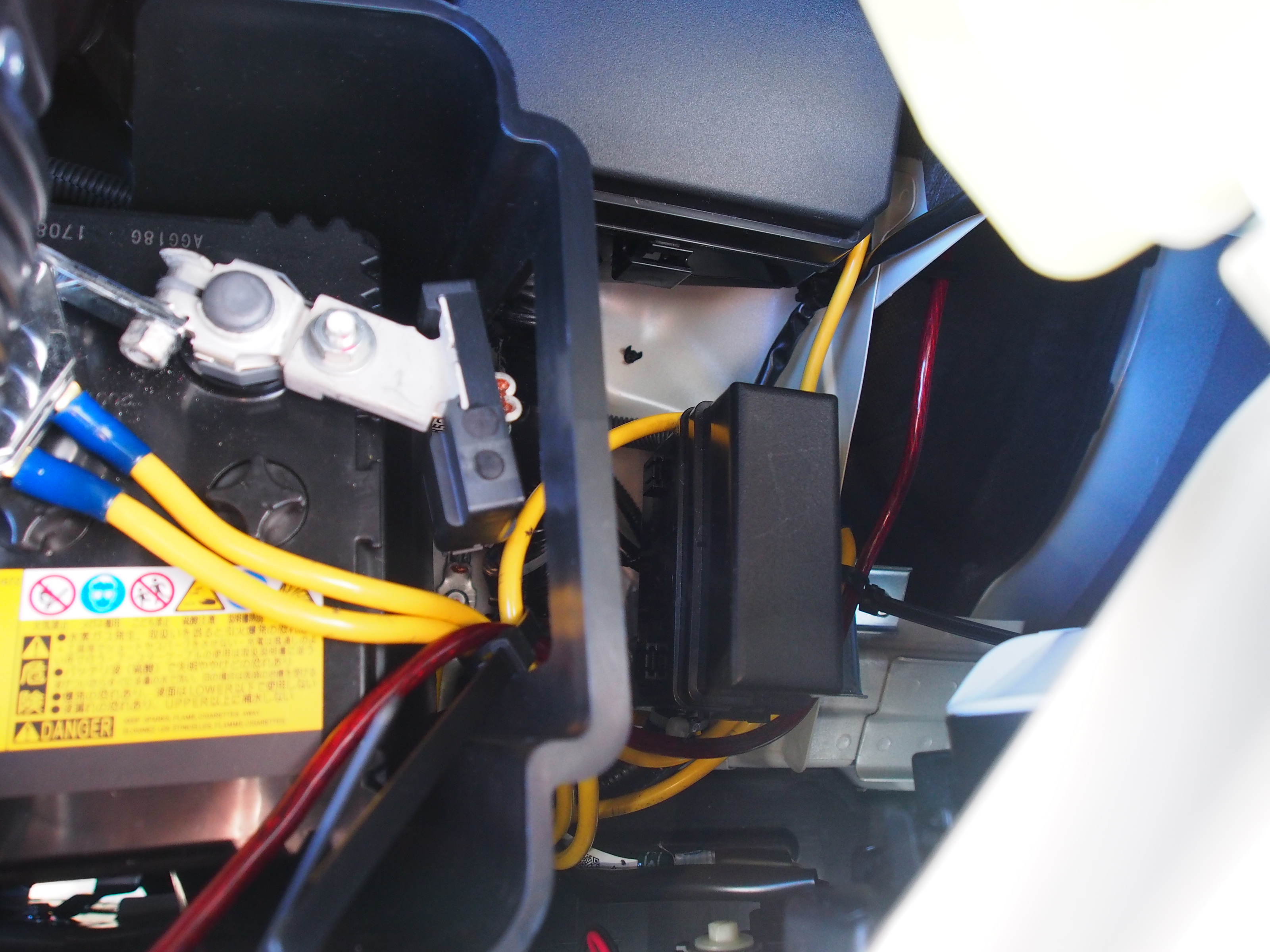まずは、電源ケーブルをエンジンルームから室内に引き込みます。