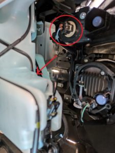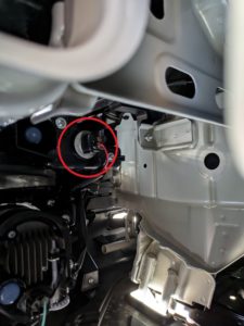 同じように運転席側も作業するのですが、写真のように白いタンク(?)があり、少し作業しにくいのと、線の固定が結構時間取られました。
