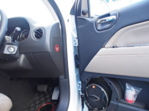この置き場所が悩みました。きちんとネジで固定できるようになっているのですが、そうすろと車に穴をあける必要があるので、なるべくそうならないようにドア内に押し込みます。ちょっとこれで様子見です。