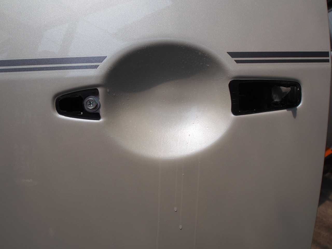 さて、貼り付けですが前回の失敗もあり、今回はマニュアルどおりにしますが、最初ドアハンドルを外すのが面倒でしたが、やっぱり外した方が断然きれいに貼れます。