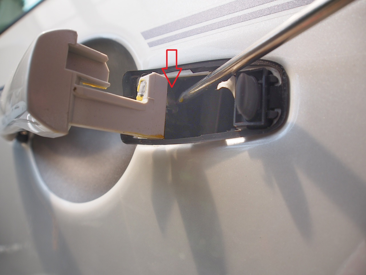 短いほうのドアハンドル部分を外します。