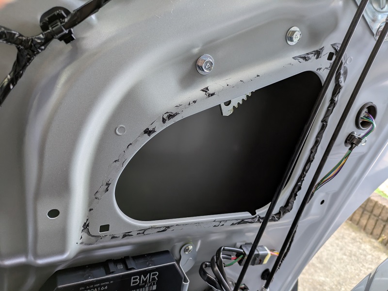 やっと後部スライドドアのスピーカー交換とデッドニングをします。