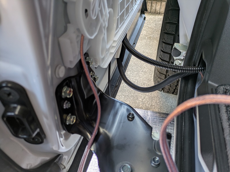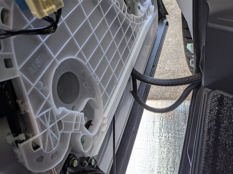 配線のカバーはいつものプラスチックしかなかったので(柔らかくない)、ドアをスライドするごとに「パキっ」と音がします。