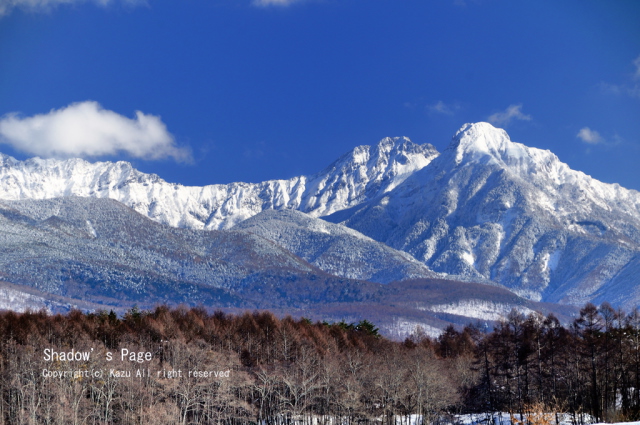 冬は空気が澄んでいるので青空が映えます。ビーナスラインの途中で!